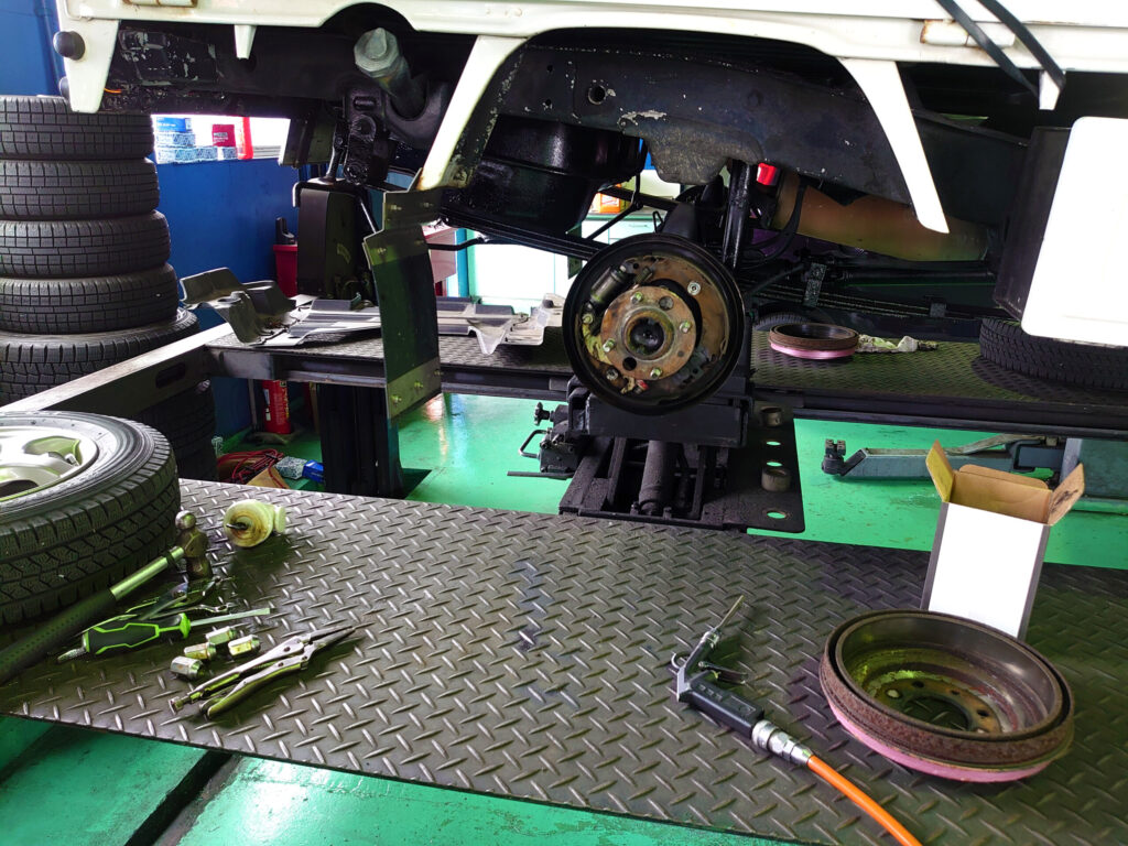低年式車や走行距離の多い車では、ブレーキキャリパー内部のゴム部品(ピストンシールなど)が劣化し、異音や引きずりの原因になることがあります。